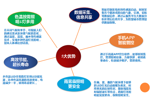 在能源日益短缺,溫室效應(yīng)越來(lái)越嚴(yán)重,國(guó)家和地方政府大力號(hào)召節(jié)能減排、綠色照明的情況下,我司通過(guò)自主知識(shí)產(chǎn)權(quán)獨(dú)立研發(fā)互聯(lián)網(wǎng)+多色溫防霧霾LED全智能路燈系統(tǒng),有效的控制能源消耗,提高路燈壽命,降低維護(hù)和管理成本,具有根據(jù)車流量自動(dòng)調(diào)節(jié)亮度、遠(yuǎn)程照明控制、故障主動(dòng)報(bào)警、燈具線纜防盜等功能,能夠大幅節(jié)省電力資源,提升公共照明管理水平,節(jié)省維護(hù)成本。