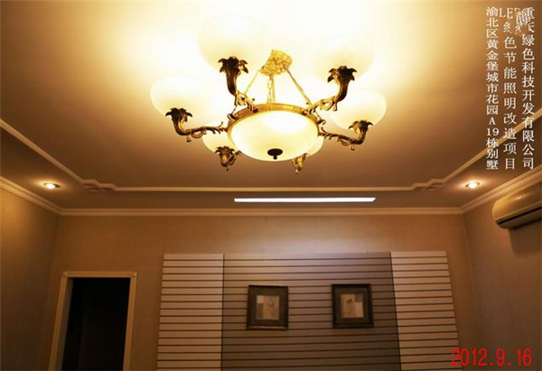 我司在渝北區(qū)黃金堡城市花園A19棟別墅實施的LED綠色節(jié)能照明改造案例實景圖