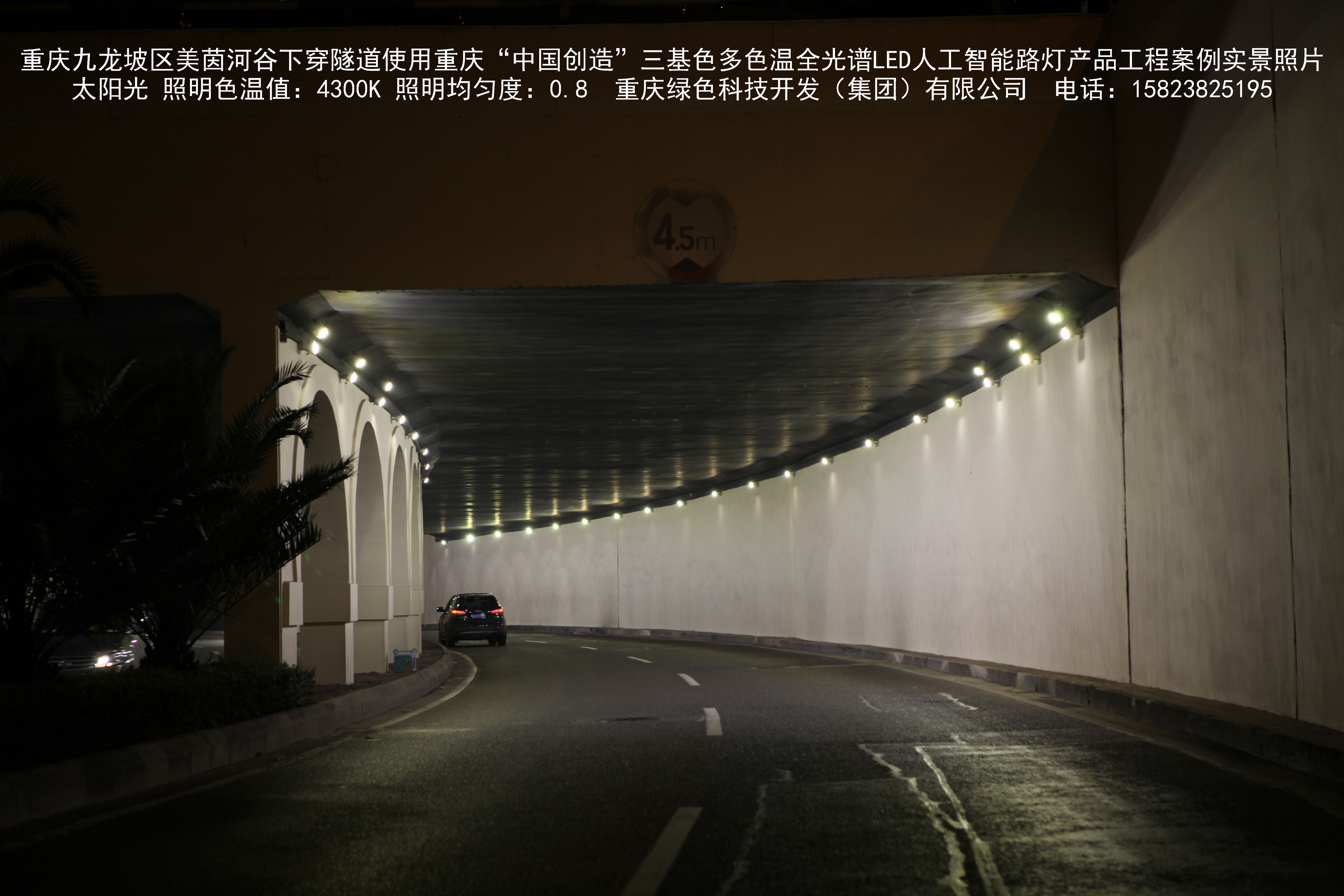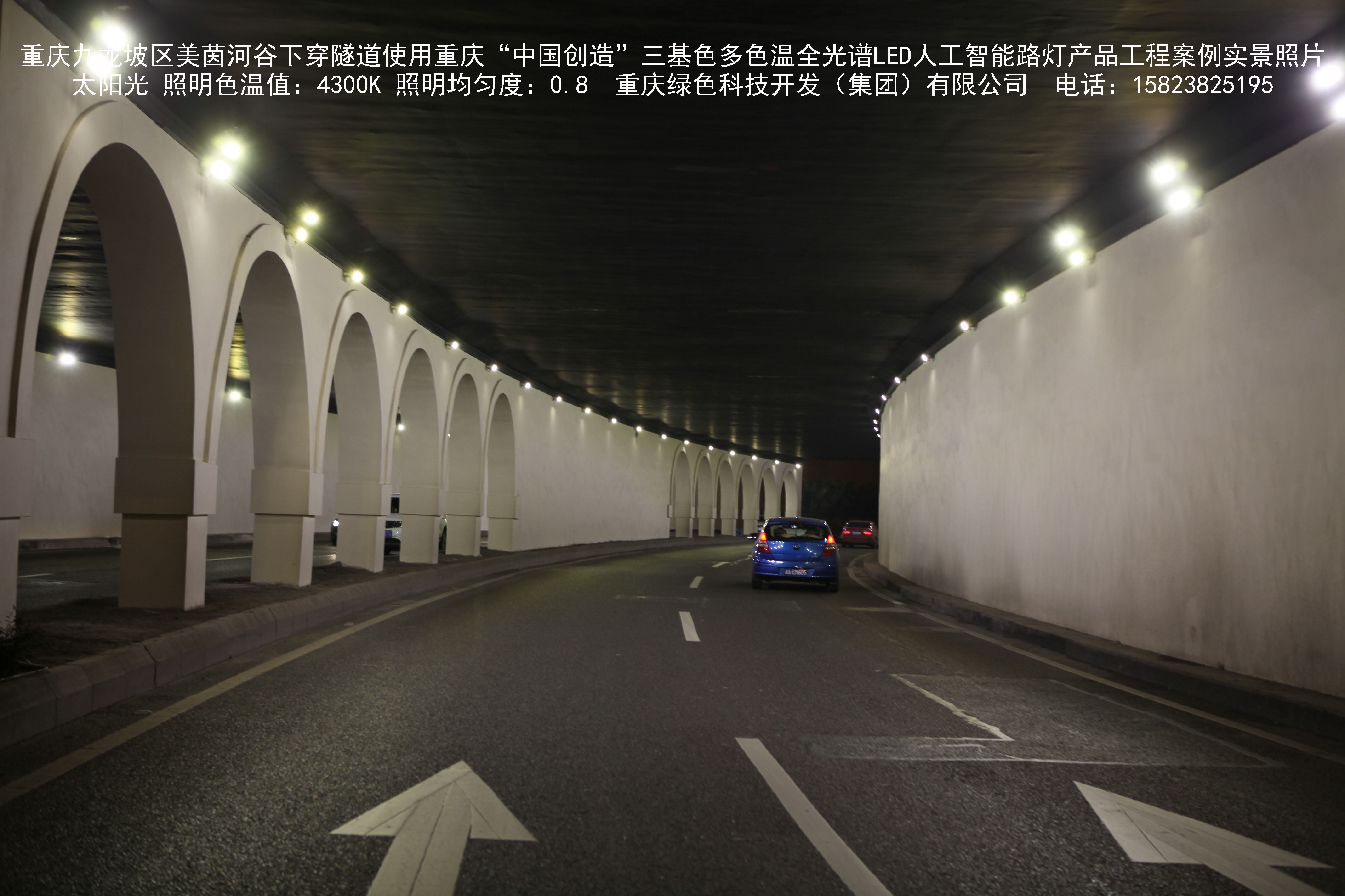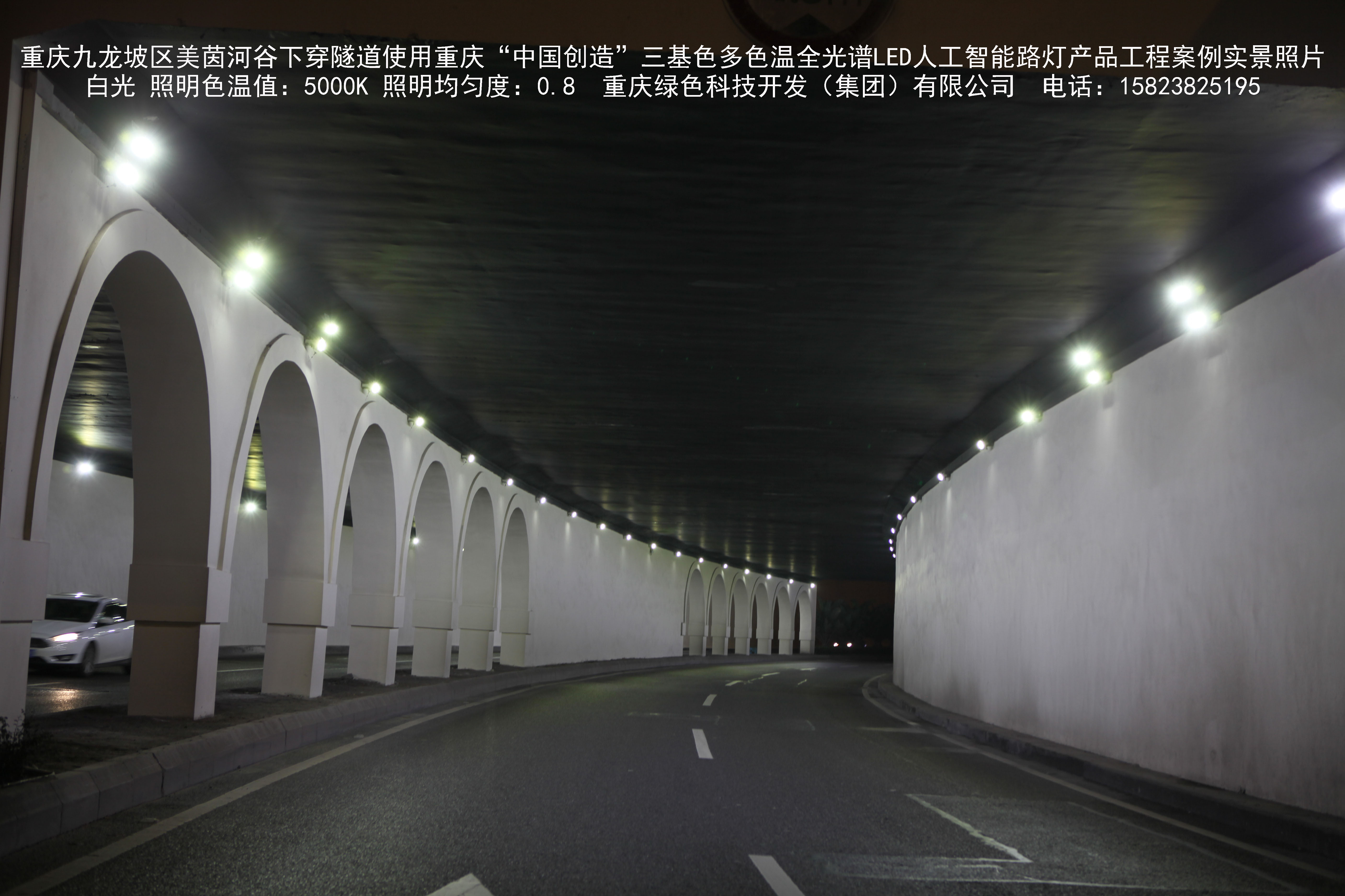 2018年9月,重慶市九龍坡區(qū)城市管理局使用我司自主研發(fā)制造的重慶“中國創(chuàng)造”三基色多色溫全光譜LED人工智能隧道燈系列產(chǎn)品,實施了美茵河谷下穿隧道市政設施品質提升工程。該工程已全面竣工。工程實施后,極大地提高了城市照明清晰度、燈光均勻度、舒適度。通過智能終端實現(xiàn)單燈感知、線纜防盜報警,與原高壓鈉燈相比,節(jié)能率60%以上,有效解決了關閉控制回路或間隔關燈方式造成的照明暗區(qū),確保行人和車輛通行的安全,實現(xiàn)城市路燈照明系統(tǒng)的智能化管理,推進了智慧城市建設。